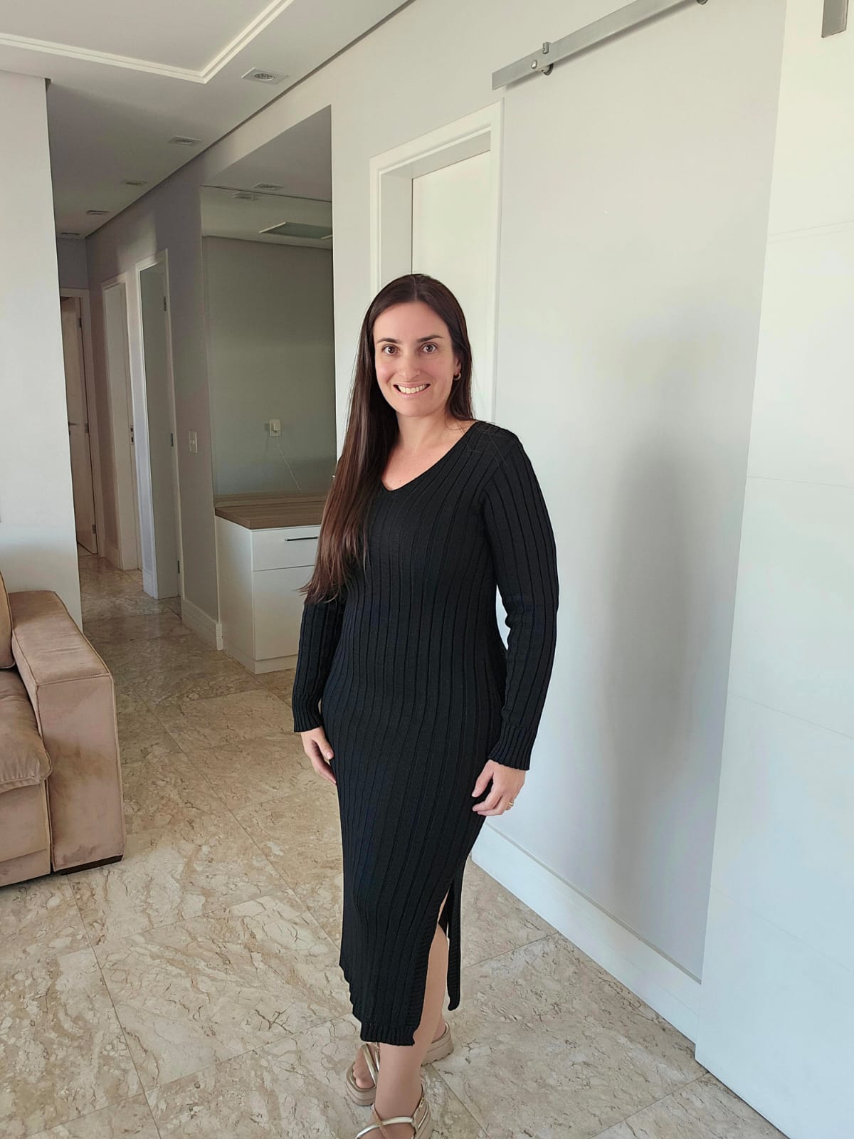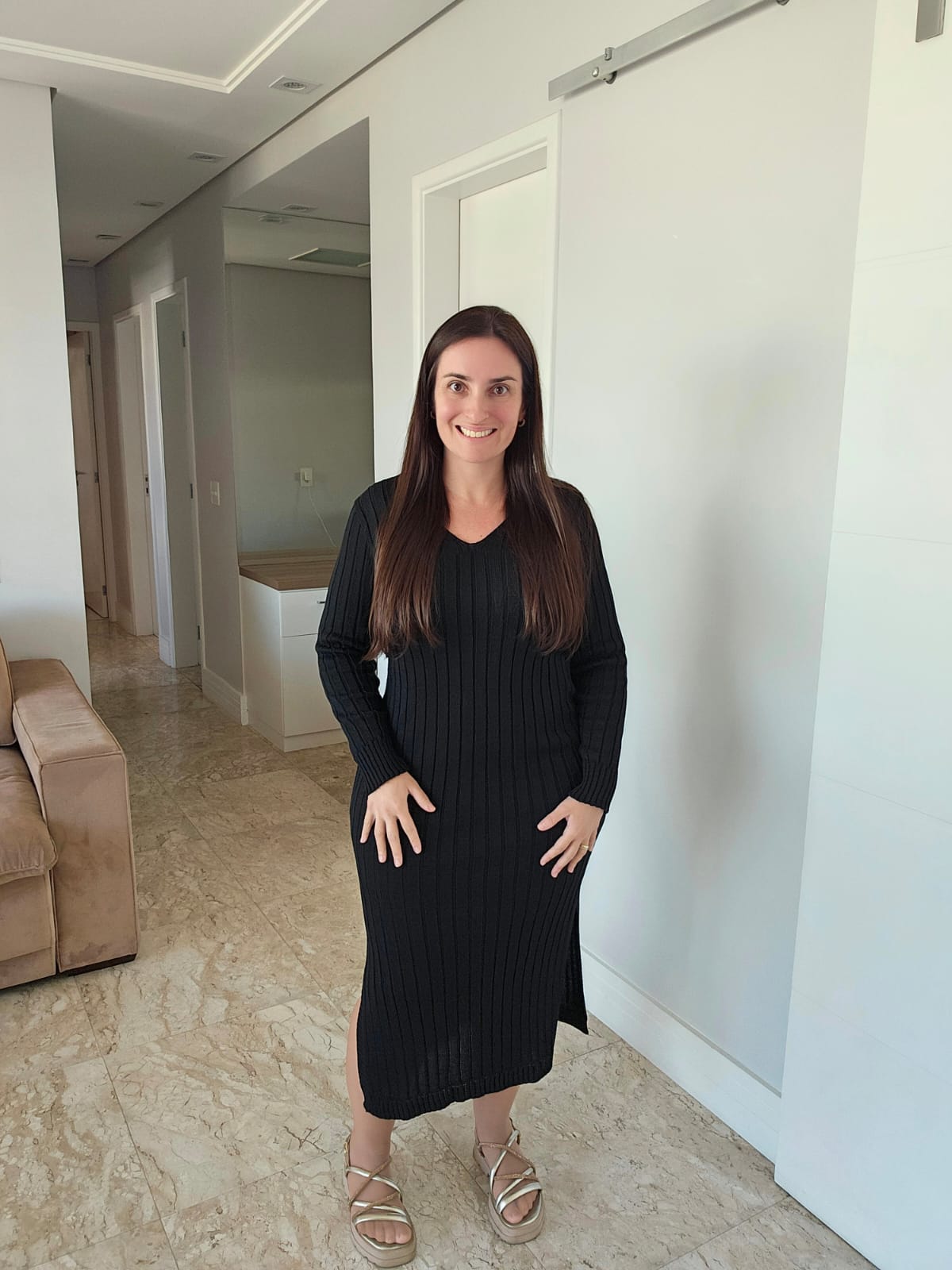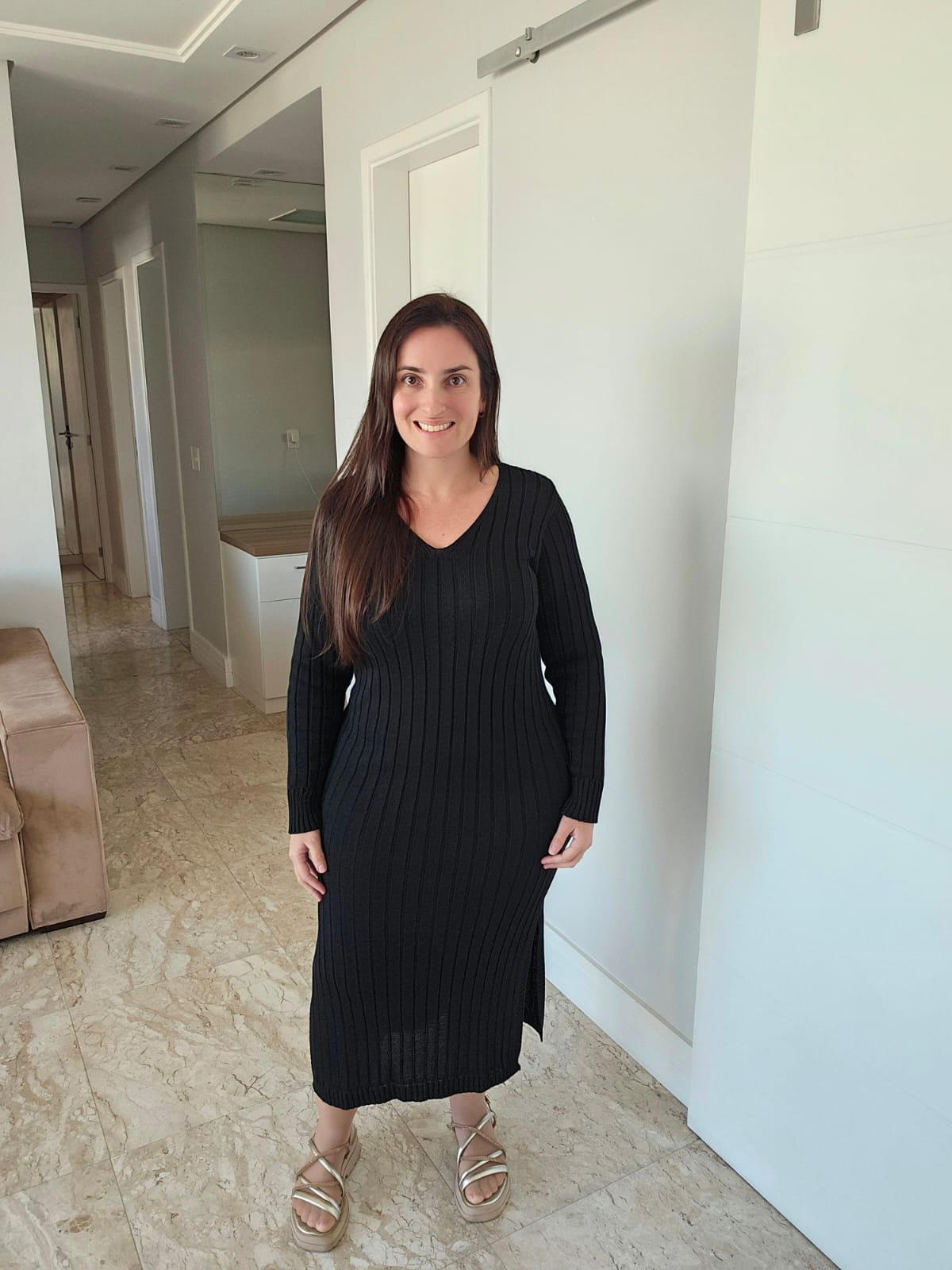 Vestido de Tricô canelado, com manga longa e fenda lateral. Tecido com boa elasticidade, veste muito bem!