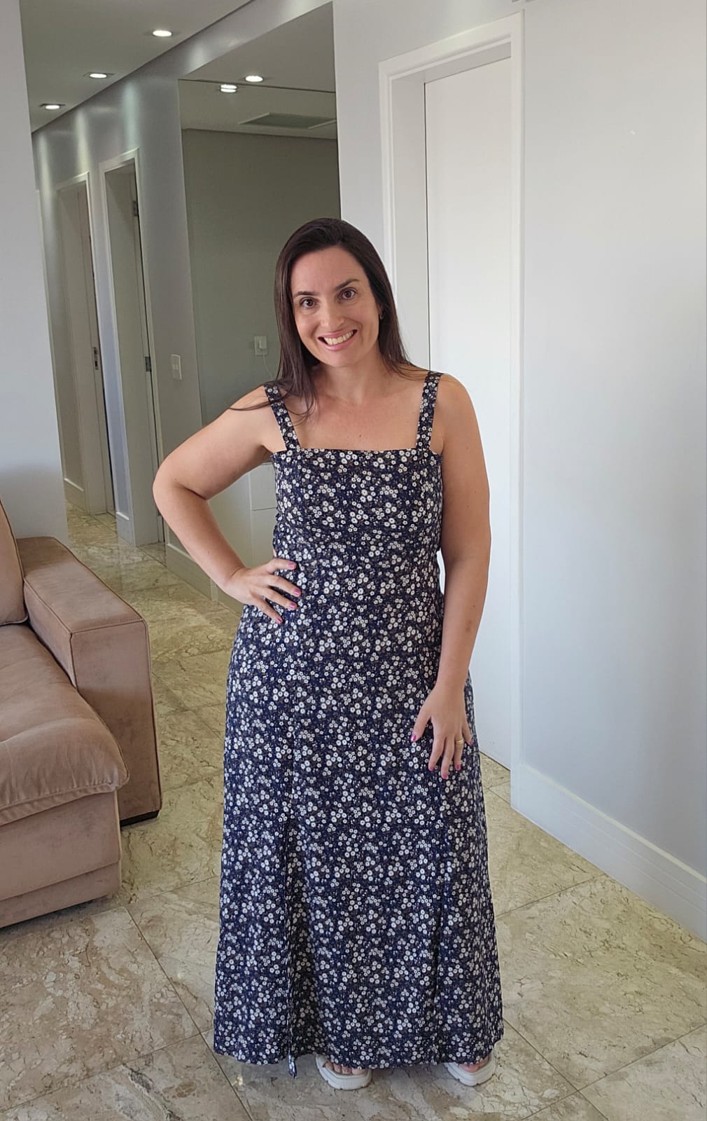 Vestido longo com amarração nas costas, com fendas que tornam o seu caimento perfeito.
